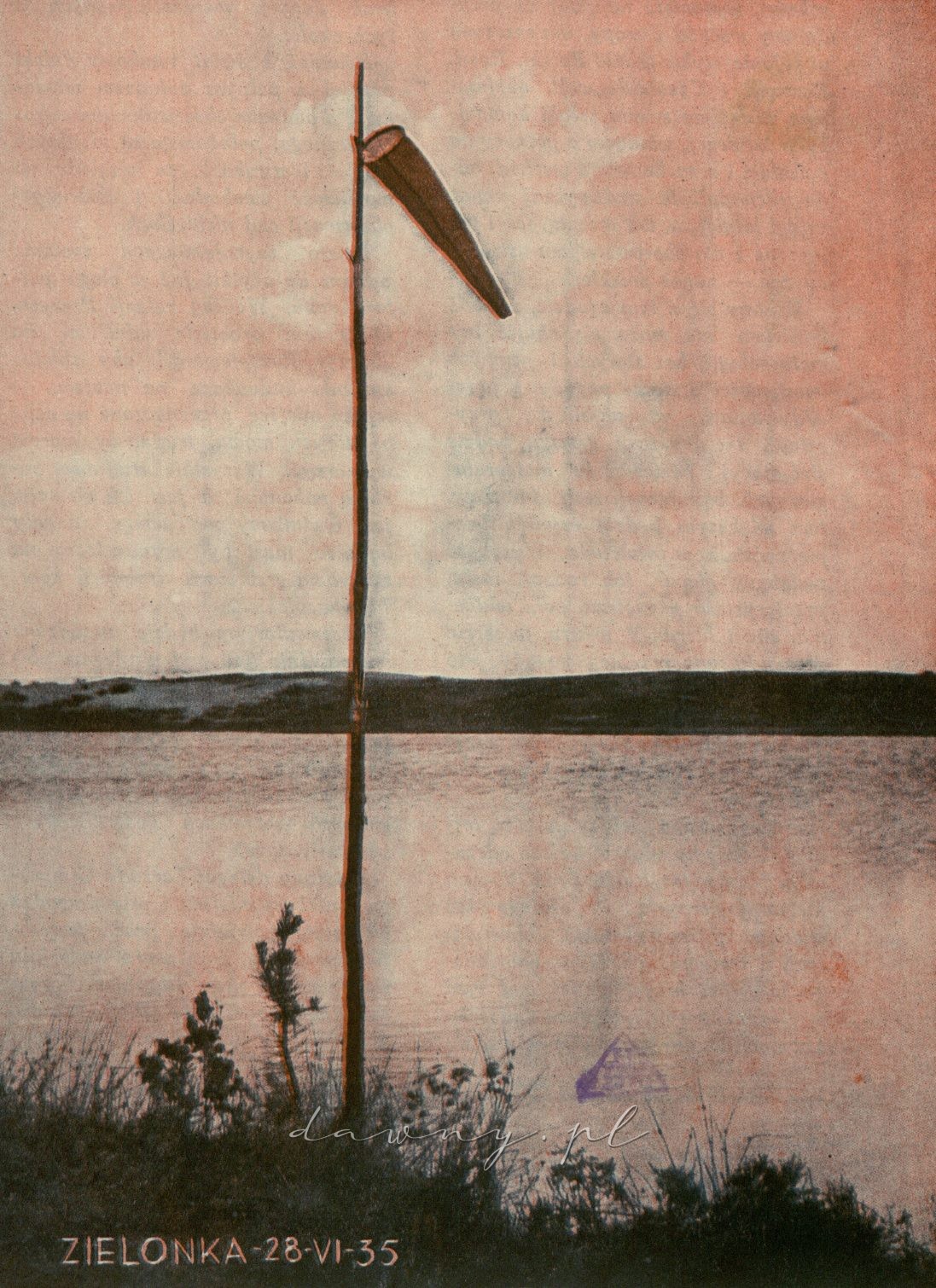 Pewnego dnia, — było to już dość dawno temu, — stanęła niema ugoda między Czytelnikami a redakcją „Lotu” , by nie blagować sobie nawzajem. Dlatego, mimo najszczerszych chęci, nie możemy napisać: Konkurs Latających Modeli Wodnosamolotów wypadł świetnie. Nie. Najwyżej, czyniąc zadość prawdzie, musimy napisać poprostu: odbył się. I to nie w pierwotnie określonym terminie 22 czerwca, lecz o tydzień później. Przedewszystkiem skrewiła pogoda. Było to do przewidzenia, gdyż zwyczaj deszczu w dniu konkursu wchodzi już w tradycję. W pierwszym wyznaczonym terminie skończyło się na przejażdżce i zmoknięciu zawodników jury, prasy, fotografa i widzów. Nawet modele nieco podmokły. Wypogodziło się dopiero przed samym zmierzchem. Niektórzy modelarze urządzili sobie generalną próbę startu i wodowania swoich „maszyn”. Próby wypadły o tyle dobrze, że pozwolono sobie mniemać, iż zawody nie mają prawa nie udać się. Terenem konkursu była Zielonka pod Warszawą, a raczej Czarny Staw, o dwa kilometry na południe od wymienionej stacji. Z tego to Czarnego Stawu umieściliśmy fotografję na okładce ze wskaźnikiem wiatru. Na nieszczęście bez modeli.![]()