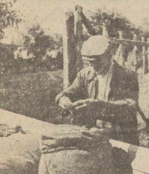 — Właściwie to już miałem gotowe wszystko na 20 lipca — wymłócone, obsuszone, przygotowane w workach. – Ale czekałem na całą gromadę, żeby z pompą tu, do Tłuszcza, zajechać. A tymczasem trochę się sąsiadom w omłotach pomogło, żeby już prędzej, żeby nasza gromada pierwsza…
